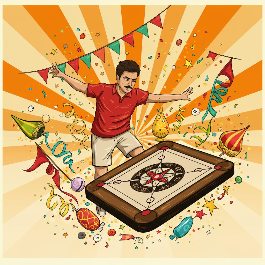 It is a popular indoor game that involves flicking a striker to move small discs into corner pockets in a square board