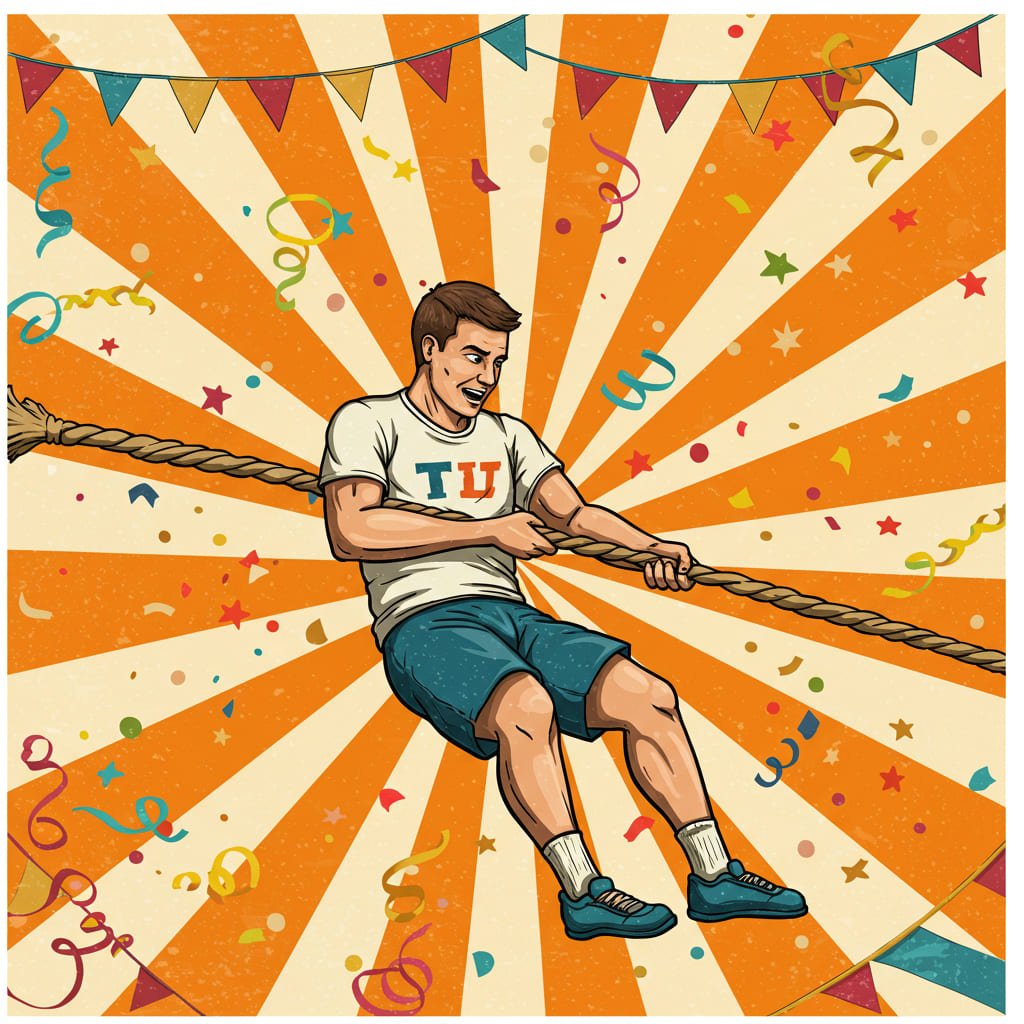 Tug of War, athletic contest between two teams at opposite ends of a rope, each team trying to drag the other across a centre line.